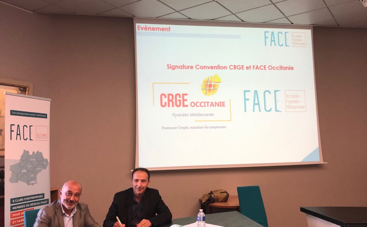 Le CRGE et FACE Occitanie unissent leurs forces ! Le 5 Octobre dernier, le Président du CRGE Occitanie José Raza a signé une convention de partenariat avec FACE Occitanie (Fondation Agir Contre l’Exclusion) afin d’engager leurs réseaux respectifs dans des collaborations territoriales.
