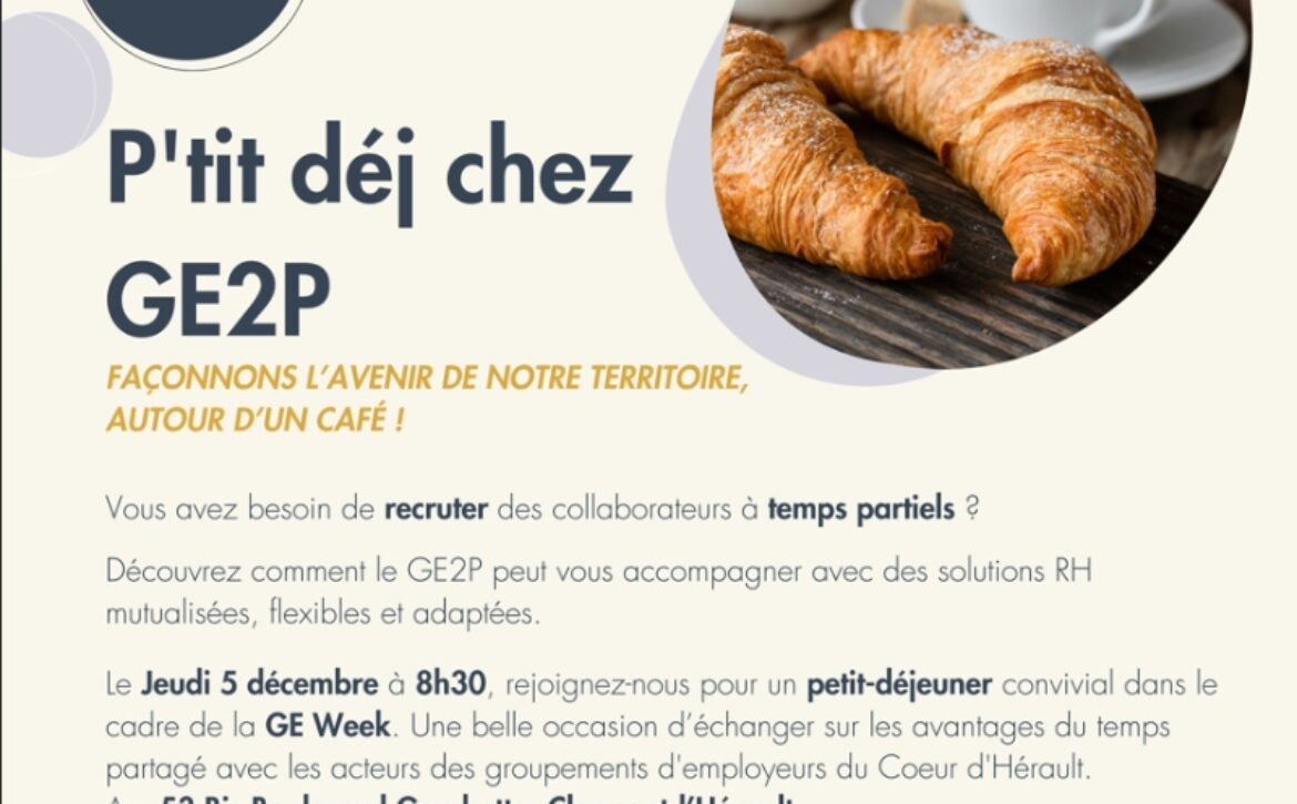 Entreprises du cœur d’hérault, le GE2P organise son p’tit déj à l’occasion de la GE Week 2024.