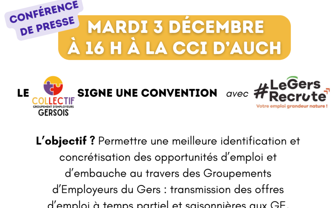 Signature de deux conventions de partenariat par le GE 4 Saisons : Le Gers recrute & l’AMF 32.