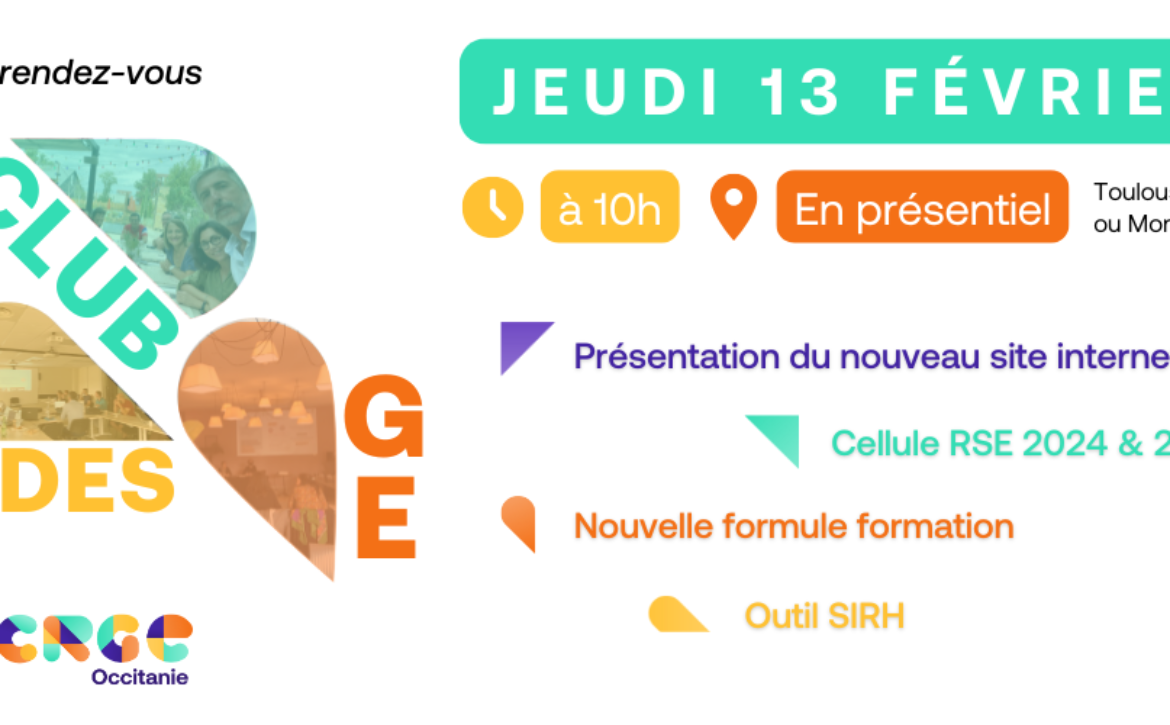 Retrouvons-nous en présentiel à l’occasion du premier Club des GE de l’année ! Présentation du nouveau site internet ; Cellule RSE 2024 & 2025 ; Nouvelle formule formation ; Outil SIRH…