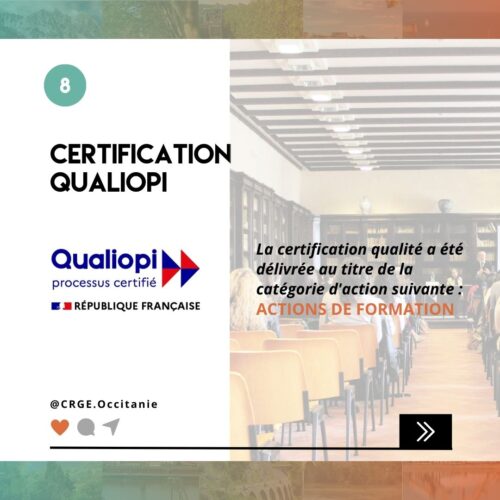 - Le CRGE Occitanie certifié Qualiopi au titre de ses actions de formation