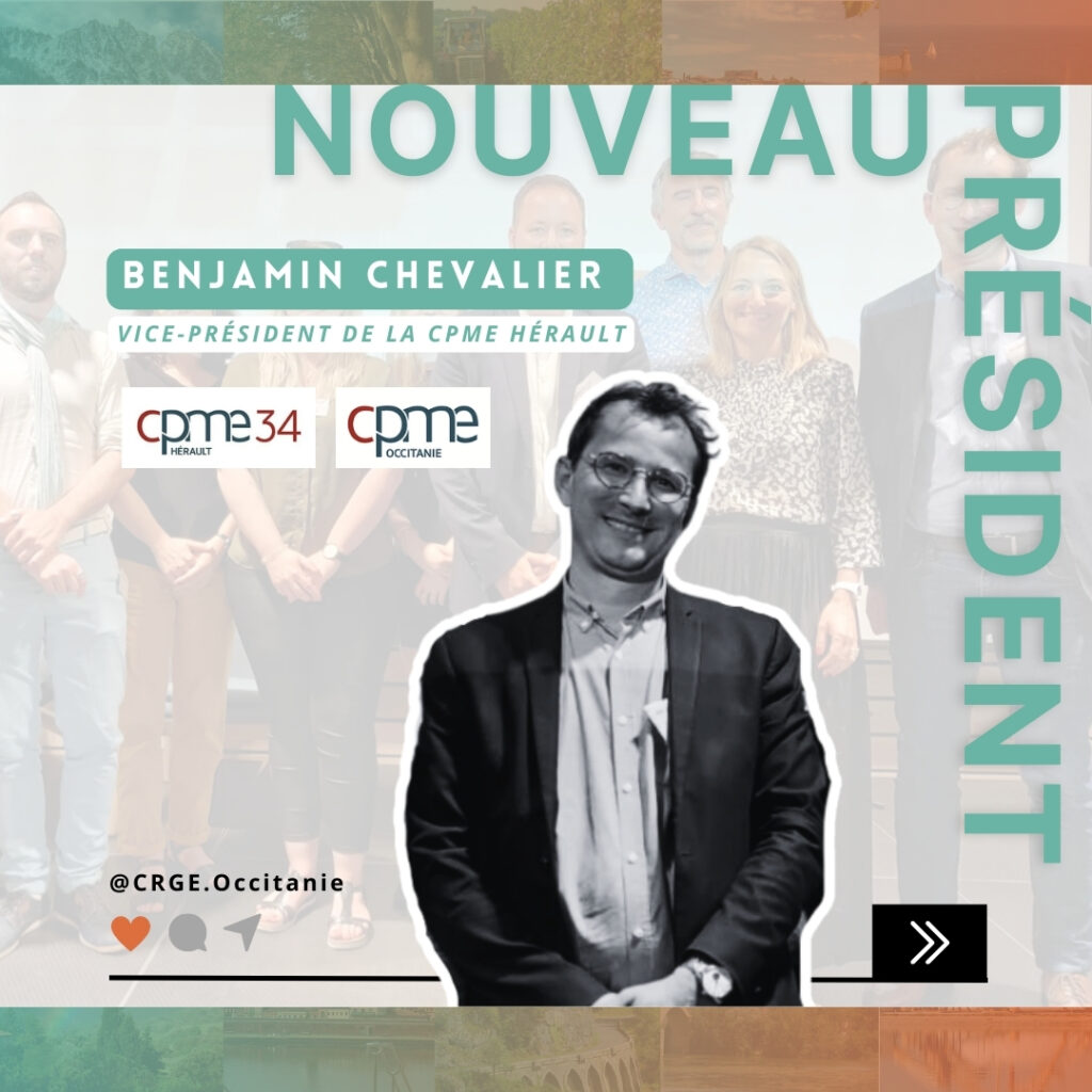• AG élective, élection de Benjamin Chevalier (CPME Hérault – CPME Occitanie), nouveau président du CRGE Occitanie depuis Juin 2023 ;