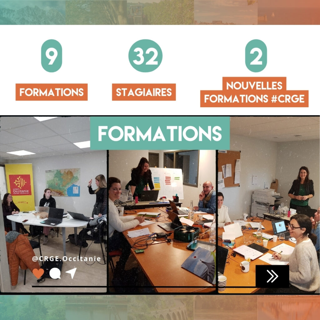 • 9 formations réalisées auprès de 32 stagiaire : Deux nouvelles formations “Le GE en 180°” et “La communication digitale en GE” ;